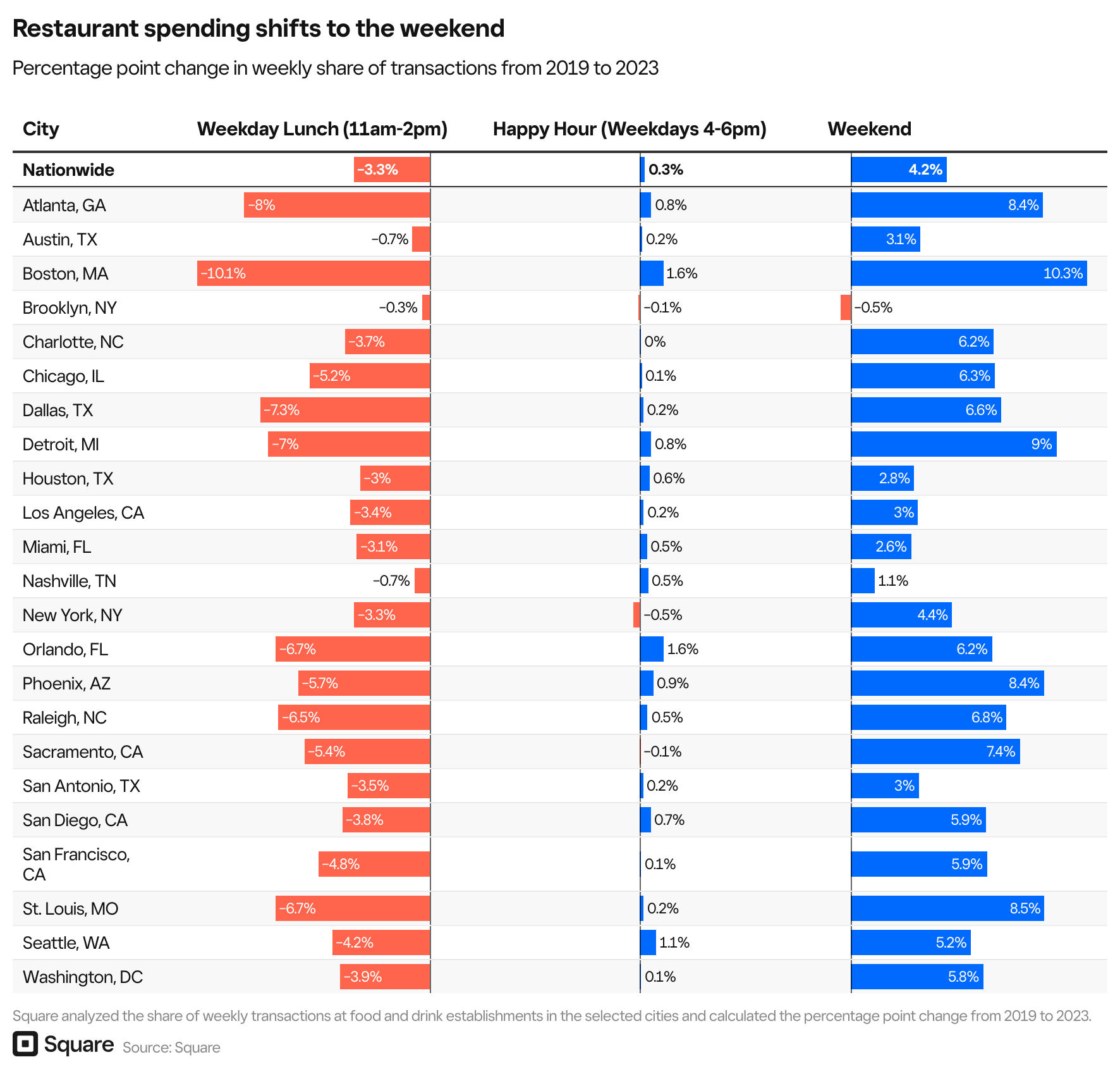 comparing 2019 to 2023. On the other hand, weekday lunch is down across the